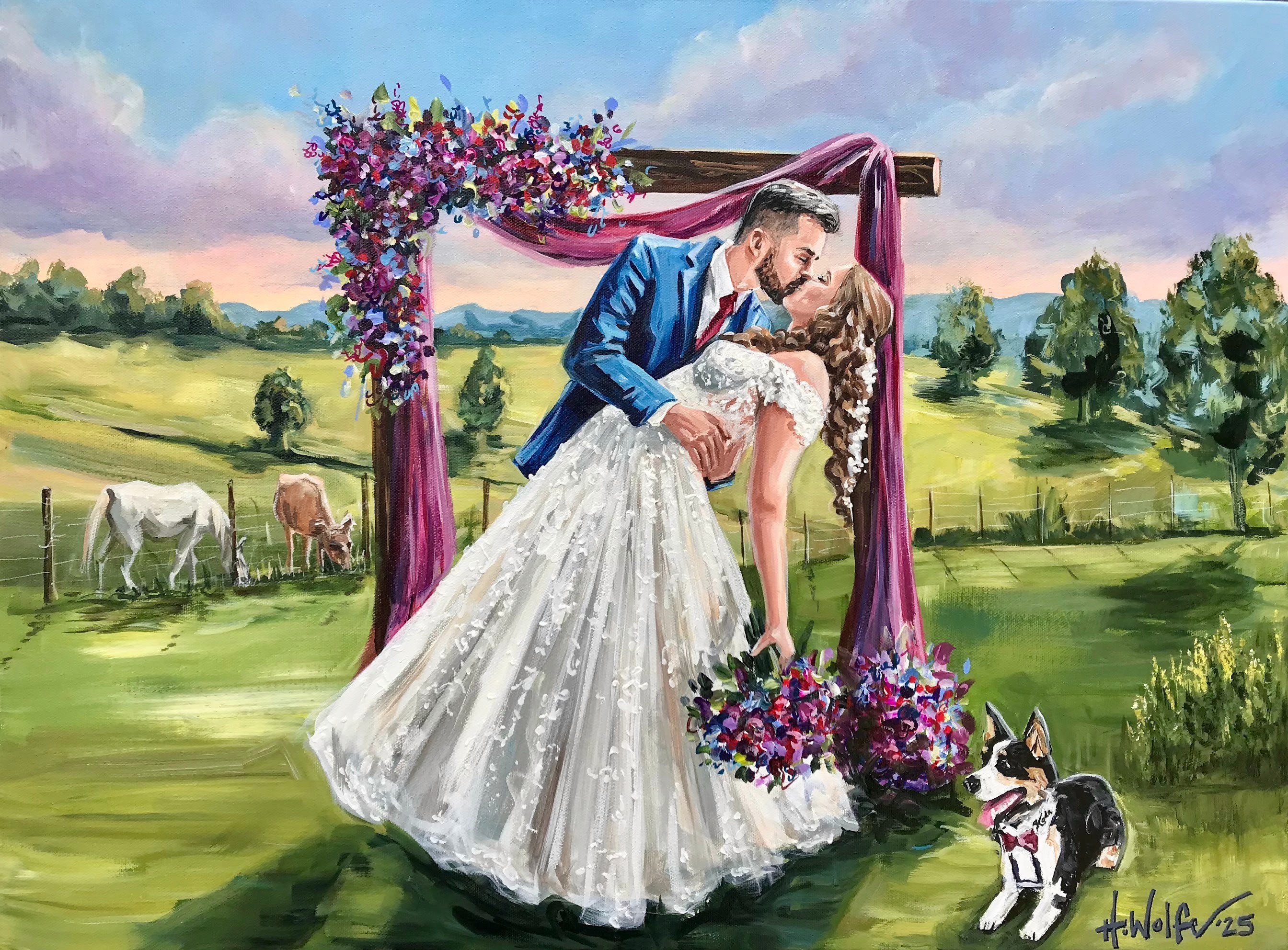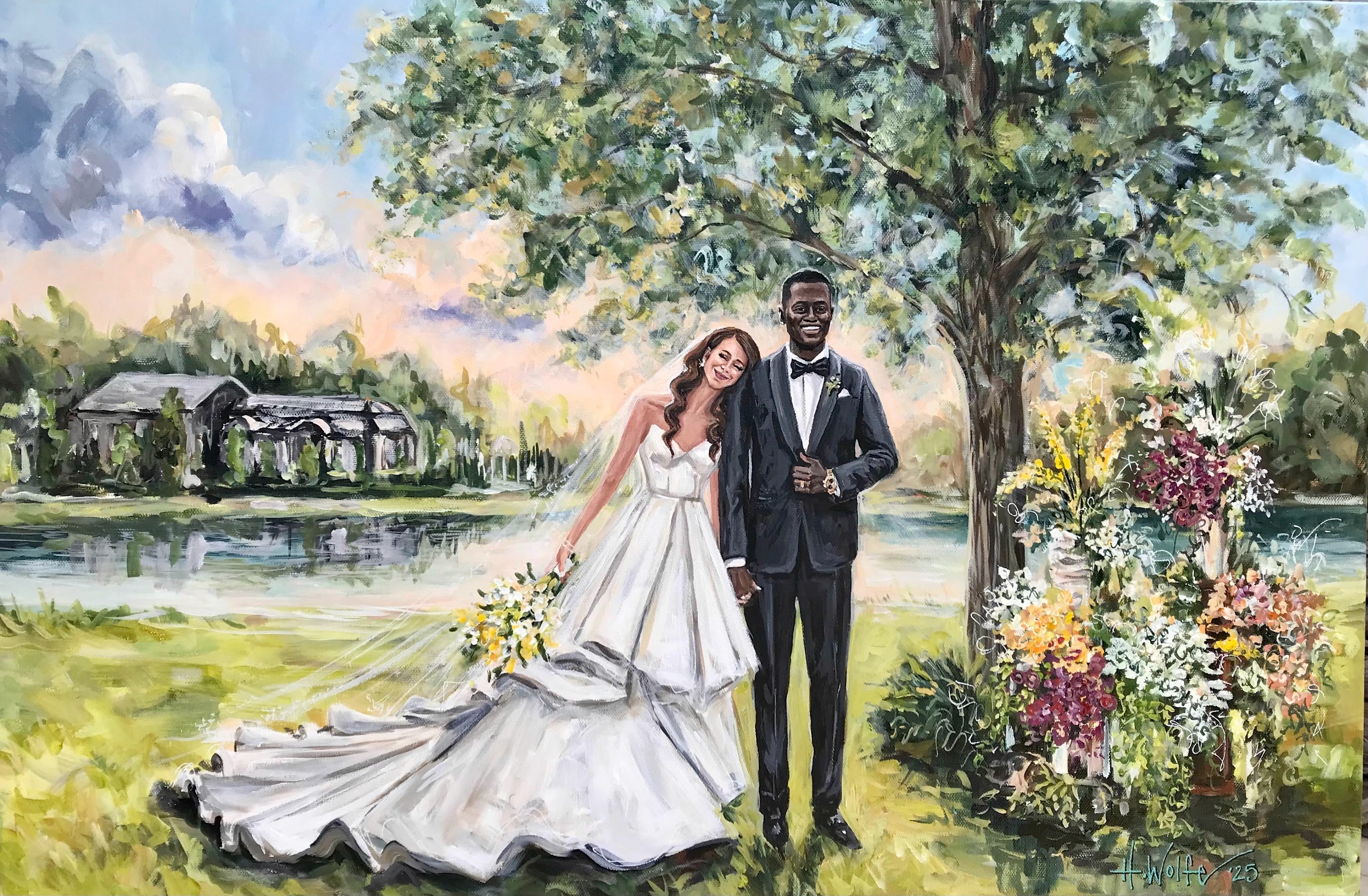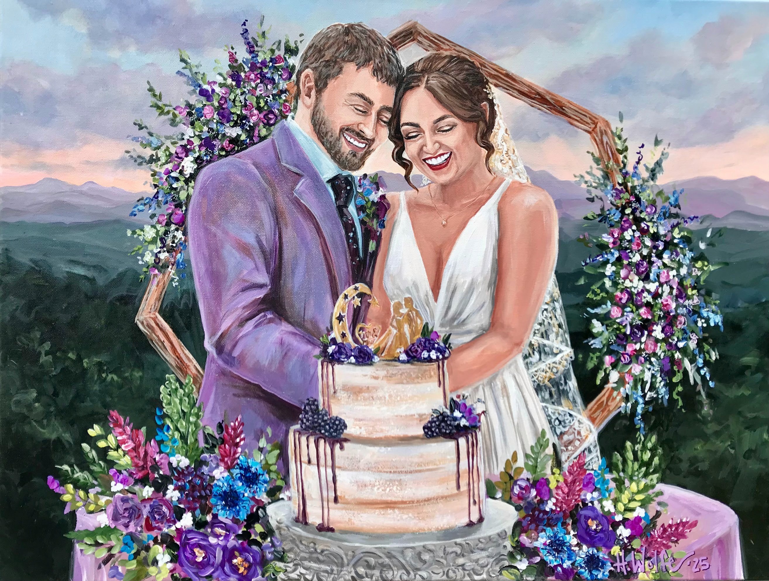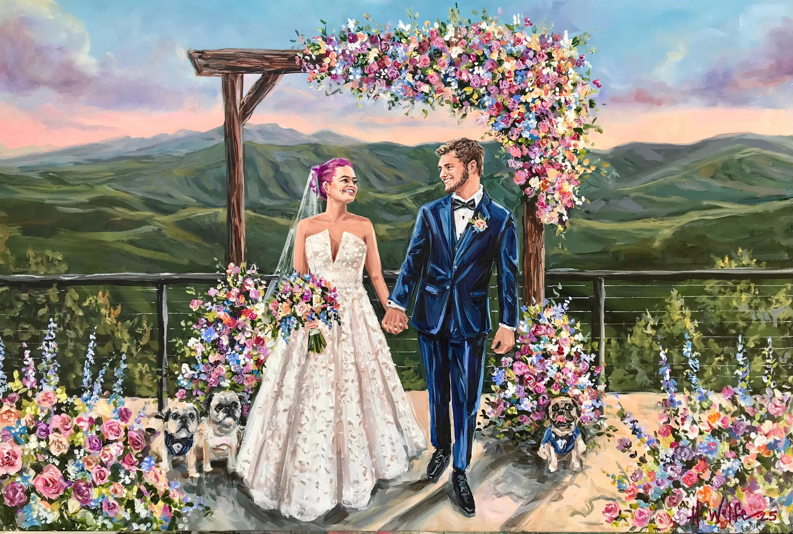 Commission a truly one-of-a-kind experience. I am not limited to time and space with how things happen. I can superimpose, enlarge, eliminate, and embellish to create the prefect scene. My artistic style is perfect for any wedding. I am a color fanatic and I have even developed my own line of custom colors that other artists use to improve their portrait quality! I am so blessed to make a living doing what I love. It is my great honor to make your vision a reality with my trained brush.