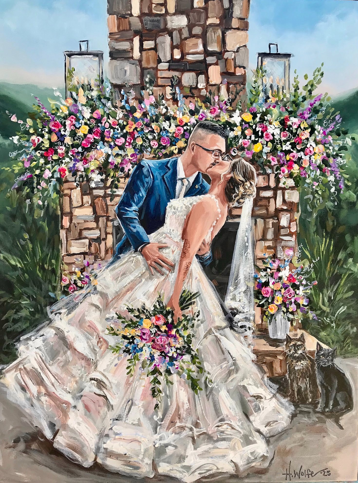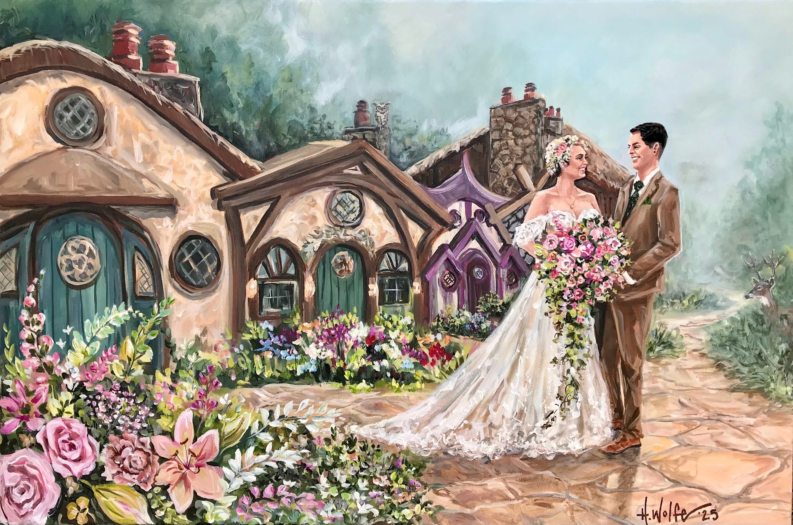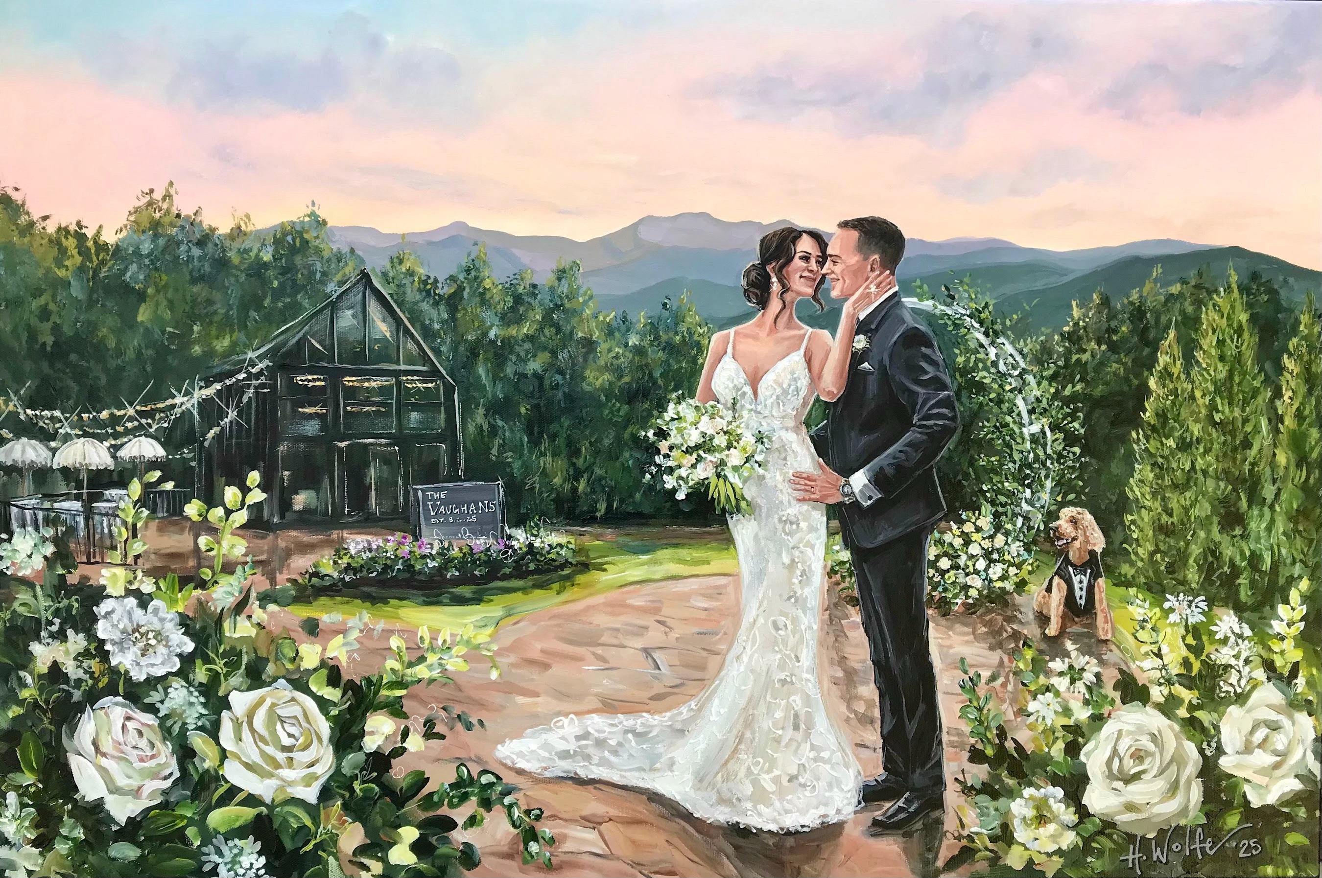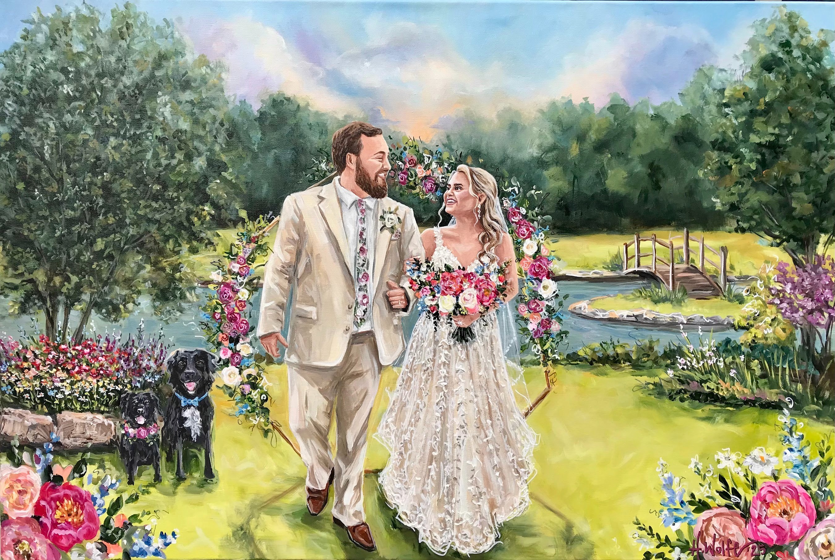 Commission a truly one-of-a-kind experience. I am not limited to time and space with how things happen. I can superimpose, enlarge, eliminate, and embellish to create the prefect scene. My artistic style is perfect for any wedding. I am a color fanatic and I have even developed my own line of custom colors that other artists use to improve their portrait quality! I am so blessed to make a living doing what I love. It is my great honor to make your vision a reality with my trained brush.