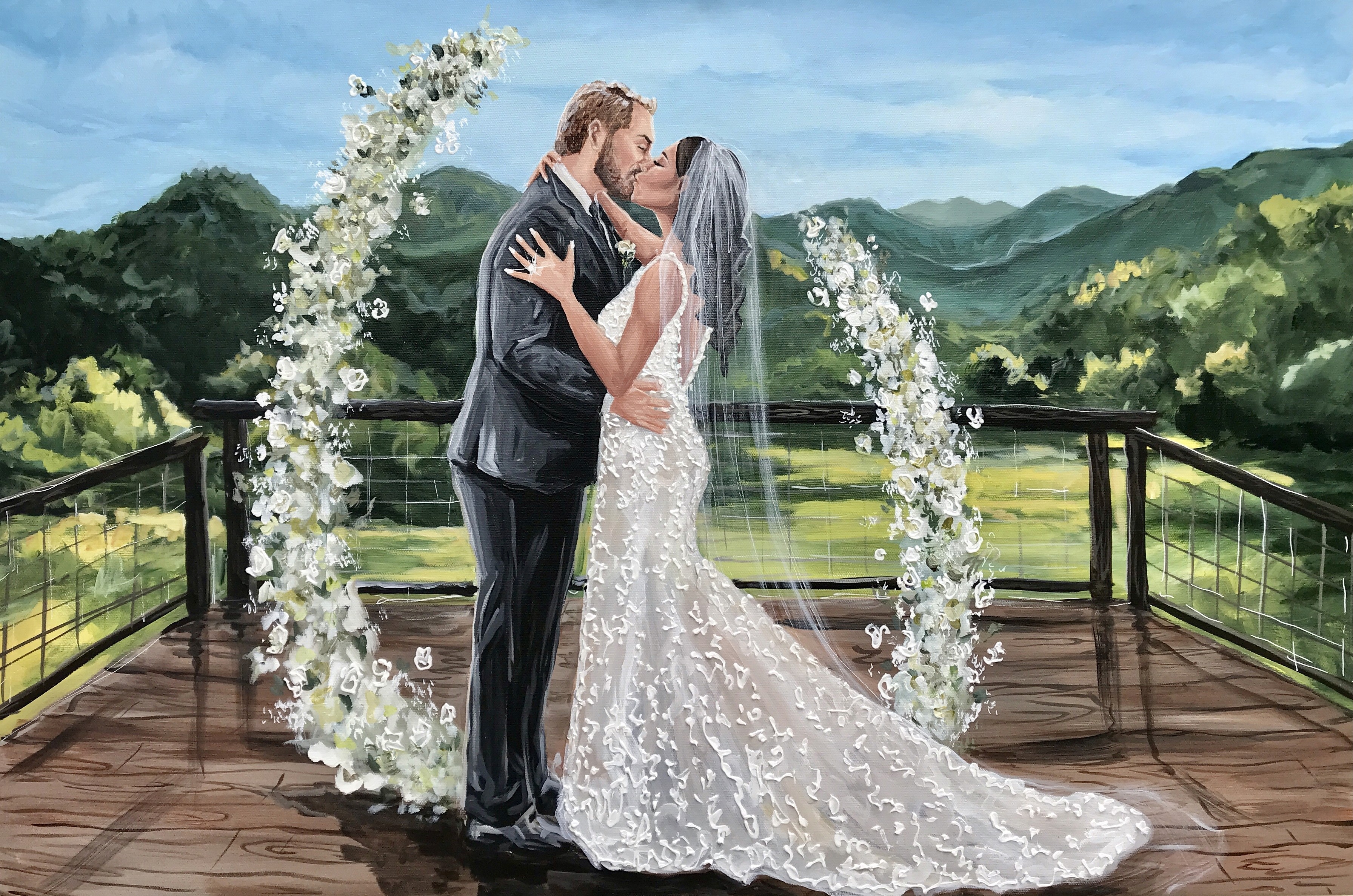 With over a million views on social media and counting, Heather's art has struck a vibrant chord with audiences worldwide. Heather specializes in live wedding painting, Collage-A-Pet portraits, and custom acrylic artwork. Based in Knoxville, TN, Heather paints on-site, immortalizing moments like ceremonies or first dances with beautiful colors and expressive textures, offering couples a timeless keepsake and an engaging experience for guests. She serves weddings throughout the Smoky Mountains, Southern USA, and regularly travels nationwide or internationally upon request. As the inventor of FASTONE® Pro paints, Heather enhances her live painting process with speed and perfect color, allowing guests to witness the artwork’s creation. Heather's engaging personality adds a timeless element to your wedding experience, making it truly unforgettable.